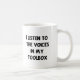 I listen to the voices in my toolbox. Funny Mechanic t-shirts, mugs, tote bags, hoodies, sweatshirts, keychains, mousepads and other apparel and gifts for Mechanics.