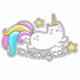 Funny cute illustrated cartoon meowlogical unicorn kitty rainbow glitter tail art sticker to scrapbook, laptop case, DIY projects.