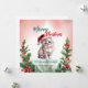 Modern Merry Christmas Wreath Holly Berries Cat kitty