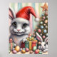 Adorable misfit Easter rabbits one wearing a Santa hat with an Easter egg decorated Christmas tree AI generated