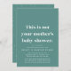 Modern times call for a modern baby shower invitation. If you're taking the party online due to social distancing, this is a perfect invitation for you. The bold playful text reads "This is not your mother's baby shower" with an emphasis on not, and the party details below include room for online social meeting information, registry, shipping info and more along with the party details. The back features a coordinating playful dot pattern. The modern teal colour is default, but it can be changed by clicking "customise further." Great for co-ed showers, adoption showers and two dad or two mum couple showers too - and anyone who appreciates your sense of humour and wit!