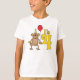Cute and funny monkey wearing a birthday hat holding a banana and red balloon standing next to a huge number 4 on fourth birthday t-shirts, hoodies, buttons, stickers, totebags and more.