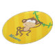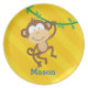 Personalised melamine plate featuring a funny monkey in the jungle with a yellow stripe background. Cute and fun design for special for boys. Custom monogrammed gift. For no personalisation, delete sample text and leave blank.