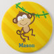 Personalised Button/Pin featuring a funny monkey in the jungle with a yellow stripe background. Cute and fun design for special for boys. Custom monogrammed gift. For no personalisation, delete sample text and leave blank.