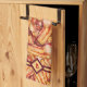 A kitchen towel with an all over bacon pattern featuring a very fancy monogram.