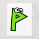 Funny monogram letter P in green and black with cartoon eyes. Easily customise and choose your own background colour. Image available on various gifts and products.