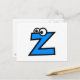 Funny monogram letter Z in blue and black with cartoon eyes. Easily customise and choose your own background colour. Image available on various gifts and products.