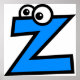 Funny monogram letter Z in blue and black with cartoon eyes. Easily customise and choose your own background colour. Image available on various gifts and products.