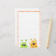 Cute and fun custom stationery for children featuring two happy monsters or aliens, one green with stripes and one yellow with orange dots. Around is an orange dot border. The monster are happy and look like they are cheering. Bright and colourful design. Other coordinating products are available.