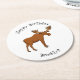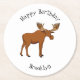 Funny moose cartoon illustration round paper coaster