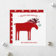 Merry Kiss Moose funny red and white Christmas holiday card featuring a whimsical moose or elk with a bunch of mistletoe tied to his antler, hoping for a cheeky kiss.