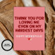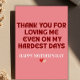 Celebrate your mum with a funny and heartfelt Mother’s Day card she will never forget. This printable card is perfect for expressing gratitude to your mum for loving you even on your hardest days.