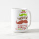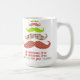 A whimsical, funny holiday or Christmas mug. Features a moustache Christmas tree with whimsical, modern patterns and prints. Great for a unique, funny holiday gift.