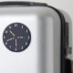 This magnet has the look of a clock, with white numbers 1-12 forming a circle. Light grey text like "Call Mum!" and "Phone home!" are repeated at various hours. The centre is a red spot, indicating that this is important! Would you rather call dad? Don't worry, all text lines can easily be customised. Solid background colour can be replaced, but dark alternatives work best.