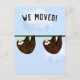 Creative moving announcement featuring two cartoon sloths and amusin we've moved line.