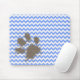 Funny Muddy Paw Print on Blue Chevron Mouse Pad