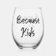 Because Kids Wine Glass-Funny wine gift idea for moms and dads. Great for birthdays, Christmas, Mothers Day and Fathers Day.