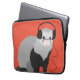 Customisable fun ferret laptop sleeve for a music lover who also loves ferrets. This musical ferret design features a vector illustration of a cute fluffy ferret wearing big headphones and listening to its favourite songs on its own phone. This fun laptop sleeve will also make a great gift for a musician who has a pet ferret.
