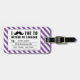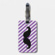STYLISH, FUNNY MUSTACHE LUGGAGE TAG. BLACK MUSTACHE WITH PURPLE AND WHITE STRIPES PATTERN. "I MUSTACHE YOU TO RETURN MY LUGGAGE". MOVIEFUN© For other colours of moustache or background stripes pattern please contact store.