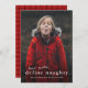 A funny photo Christmas card with simple typography define naughty greeting on the front. The back has a plaid pattern. Click the edit button to customize this design.