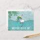 Funny design with a positive note. Never give up has a pelican swallowing a frog who has his hands around the pelican's neck. Funny gift and inspiration for friends and family.