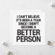 Funny New Year design in simple typography with the hilarious phrase "I can't believe it's been a year since I didn't become a better person." This sarcastic and witty New Year design makes a nice gift for anyone who like simple sarcasm and funny New Year sayings.