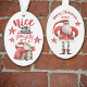 The front of this ornament declares "Nice Until Proven Naughty" in red and black stylised text. Below the text sits a wise Santa Clause in a red coat and green striped leggings, holding a cup of his favourite beverage. Beside the text are red stars. The back of the ornament has your custom text in two fields, and another image of Santa Claus. Unique and cute!