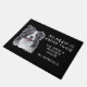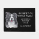 "No need to knock twice, We have a Border Collie" says this cute door mat. The text is silver grey at the right side, with an image of a black and white Border Collie at the left. Everything is placed on a black background.
