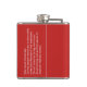 The flask itself is fine. It’s a cheap flask, obviously bought in bulk, however am prepared to overlook that. Given that it is a personalized item, I would have liked to have seen gift boxing instead of the generic packaging. Terrible printing, and/or quality. It’s a cheap, tacky vinyl. It is not cut straight and is also applied in a way that it is overhanging the bottom, causing the glue to catch on items and it will eventually roll and tear, damaging the wrap.
