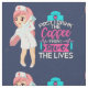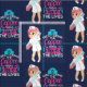 Fabric with a humourous saying: First i drink the coffee, then I save the lives. Perfect for nurses. Featuring an illustration of a female nurse wearing a cute old fashioned nursing hat and carrying a giant hypodermic needle. Dark blue background.