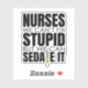 Add some humour to your belongings with our "Nurses: We Can't Fix Stupid, But We Can Sedate It" sticker. This witty saying is perfect for nurses with a sense of humour. Whether you're decorating your laptop, water bottle, or notebook, this sticker is a fun way to show off your nursing pride. Made with durable vinyl and featuring a playful design, it's sure to get some laughs. Stick it on your favourite items and share a chuckle with your fellow nurses – because sometimes a little humour is the best medicine!