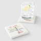 The coasters are gorgeous, a quality feel and heavy weight. They look like a precious archeological find. A rustic stone juxtaposed with a modern floral black and white print. I like the way the print goes slightly imperfect on the cut stone edges giving them a kind-of natural beauty.