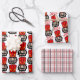 A set of 3 fun coordinating Christmas gift wrap sheets featuring a nutcracker, red and black plaid, and a nutcracker with the saying "What's Crackin'?"