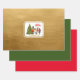 Created for a family of five, this funny Holiday and Christmas gift wrapping paper sheets features two Nutcrackers, Clara, a ballerina and Mouse King. It will bring joy to all those who see it. An elegant green and gold sugar plum Christmas Tree decorates the scene. For the first sheet, a textured gold background and vintage font for all the customisable text complete the design. The other two sheets feature traditional Christmas green and red background colours.
