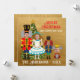 Created for a family of four, this funny Nutcracker, Clara, a younger Nutcracker and Mouse King holiday card will bring joy to all those who receive it. An elegant green and gold sugar plum Christmas Tree decorates the scene. A textured gold background and vintage font for all the customisable text complete the design.