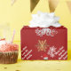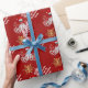 Festive personalised Christmas holiday wrapping paper design with white gold winter snowflakes and red customisable background, and a funny steampunk octopus kraken Santa with Xmas presents. Personalise this design by adding your family name or Xmas text greeting PLEASE NOTE the gold is not metallic
