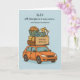 Send them off to college or university with a smile using this playful back to school card. The design features an orange car piled high with dorm essentials, laundry baskets, and lamps, with a customisable name at the top and school name on the box in the stack. The fun message “off you go, full of hopes, dreams – and half your bedroom!” captures the excitement and chaos of moving day. Perfect for wishing any student good luck as they start this new chapter with love, humour, and encouragement.