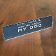 Funny conversation starter desk plate for your office decor. Elegant and pretty faded indigo blue colour in the background. The text says "Ask me about my dog." Modern and trendy design.