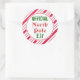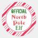 Candy Cane stripes decorate these cute Official North Pole elf stickers. Use these festive stickers for Christmas, gifts, baking, crafts, school, business, a party, holiday party, Christmas party, envelopes, Christmas cards, etc....The design is from original art.