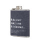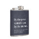 The flask itself is fine. It’s a cheap flask, obviously bought in bulk, however am prepared to overlook that. Given that it is a personalized item, I would have liked to have seen gift boxing instead of the generic packaging. Terrible printing, and/or quality. It’s a cheap, tacky vinyl. It is not cut straight and is also applied in a way that it is overhanging the bottom, causing the glue to catch on items and it will eventually roll and tear, damaging the wrap.
