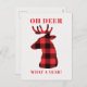Funny Oh Deer What a Year Red Buffalo Plaid Deer Holiday Postcard