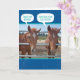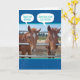 Photo of two horses hanging out. One says to the other, "Today's my birthday." The other horse says, "Time to go to the glue factory?". You thought getting old is tough, try being a horse. The inside says, "Aren't you glad you're not a horse? Happy buckin' Birthday!" Funny card for horse lovers.