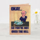 Hilarious anti over the hill birthday card for men- This funny over the hill birthday card reads No... I'm Not Over the Hill in big, blue letters. A balding elderly man wearing a suit and tie is sitting at a table with a frown on his face and his arms crossed. A decorated birthday cake is sitting on the table with still smoking birthday candles. Said cake has just been smashed with his cane. The old man knew that his cane would come in handy for something someday, and it just happened to be his birthday. It seems that after Happy Birthday was sung and the birthday candles were blown out, someone made an over the hill comment. He didn't appreciate it. And he decided to show everyone that No, he is definitely NOT over the hill. Hilarious over the hill birthday card design. It makes a funny gag, too. Make it a personalised over the hill birthday card- just add a name or your own funny phrase if you like. Buy this angry over the hill design on many men's birthday gift ideas in our Zazzle store.