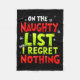 Funny On The List Of Naughty And I Regret Nothing Fleece Blanket