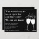 Going casual or informal? Use this funny black and white wedding invitation with Who Would Say No To An Open Bar and Free Cake? No One We Know! Add names, location and your details to invite people to help you celebrate your special day.