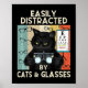 Funny Optometry Easily Distracted By Cats & Glasse Poster
