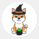 Funny orange dog is a witch classic round sticker