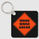 Funny orange wood work ahead caution road sign key ring