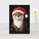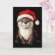 Funny Otter Santa Hat Xmas Otter Lovers Christmas Card