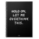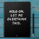 Funny "Hold on, Let me overthink this" notebook with personalised name or monogram. Black background with white text.